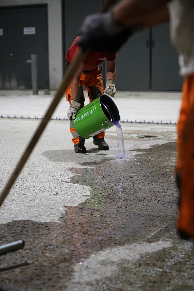 The substrate was carefully prepared beforehand: It was sanded down, existing cracks were sealed with Wecryl 887 and then thoroughly vacuumed…