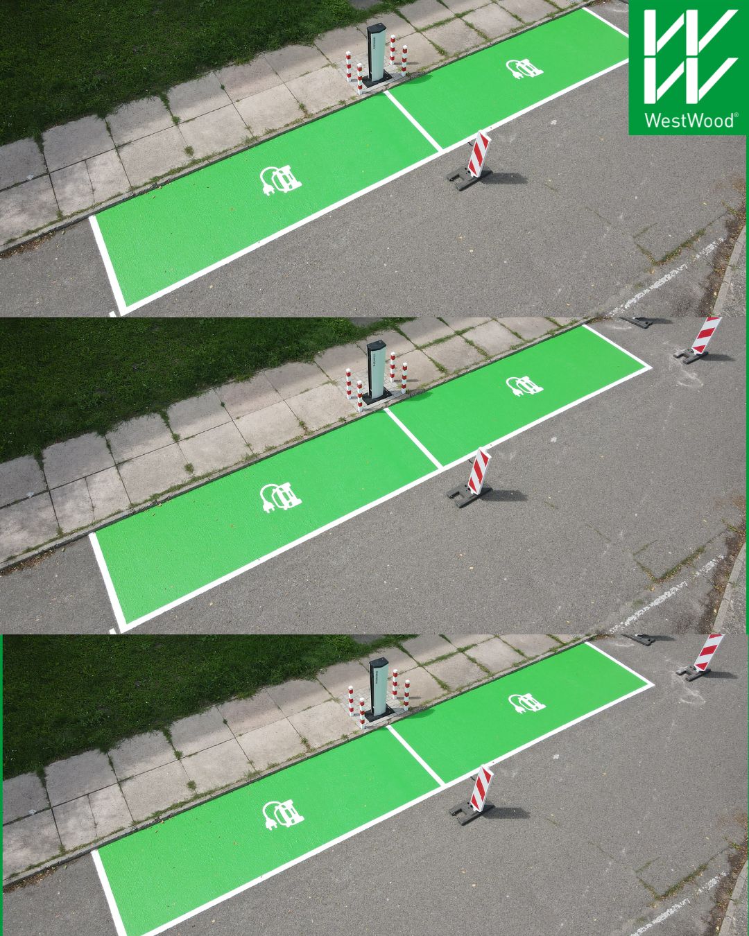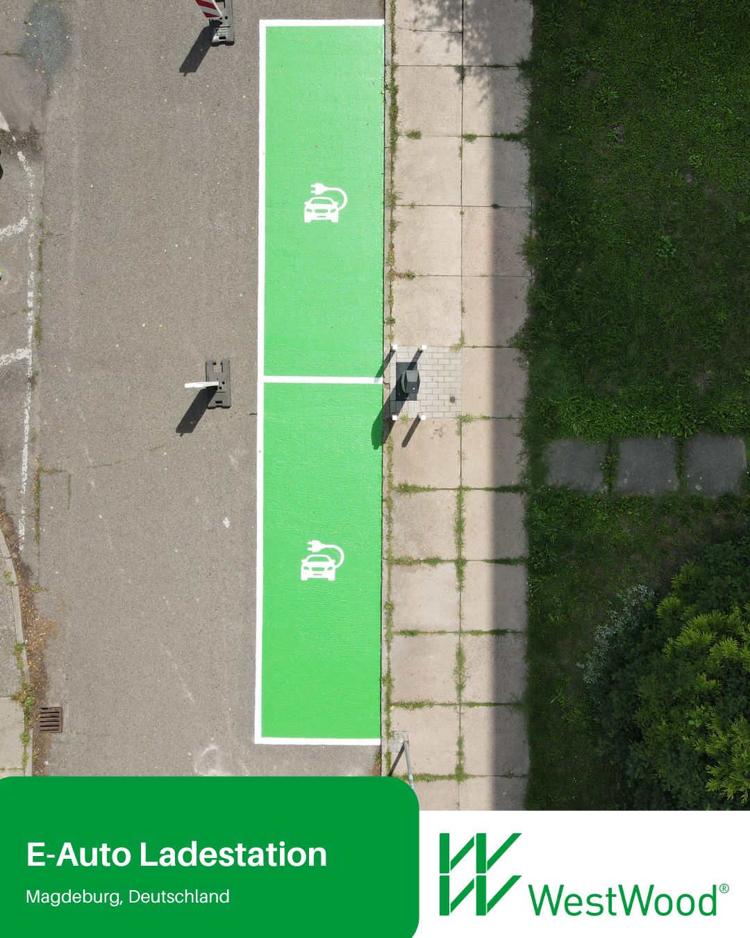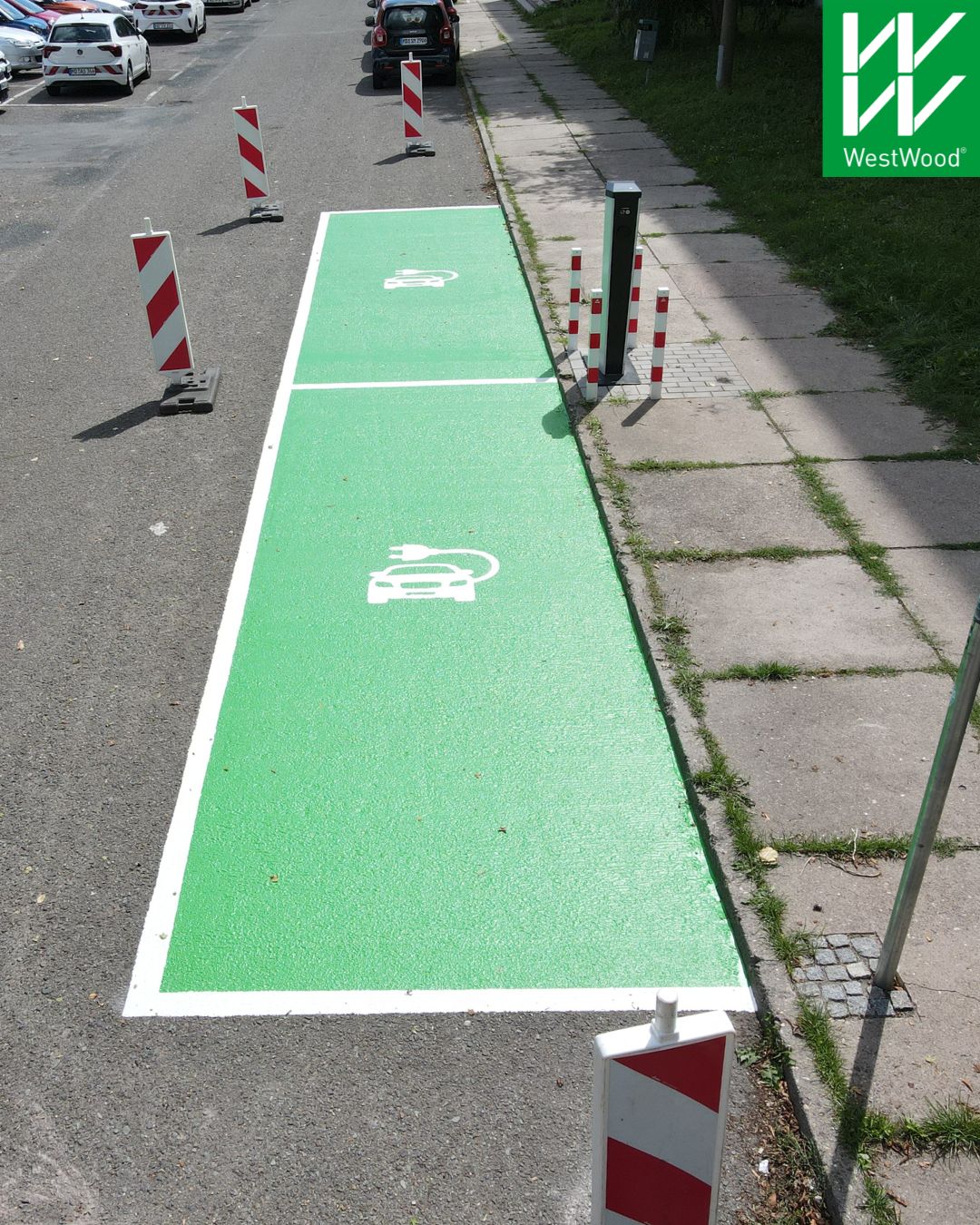 The Magdeburg Building Department has installed its own charging station for company vehicles with electric drives. In order to make the associated charging and parking areas clearly visible, we were allowed to coat them with our WeTraffic 496 BX in the color 6037.