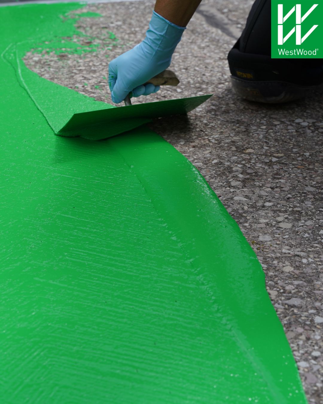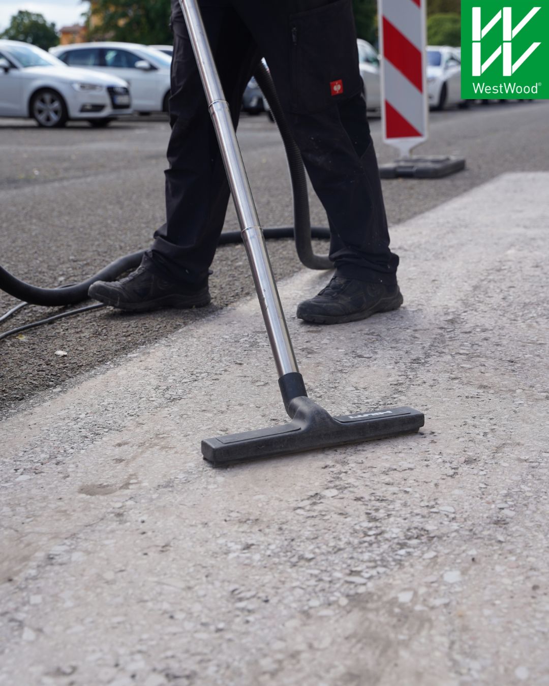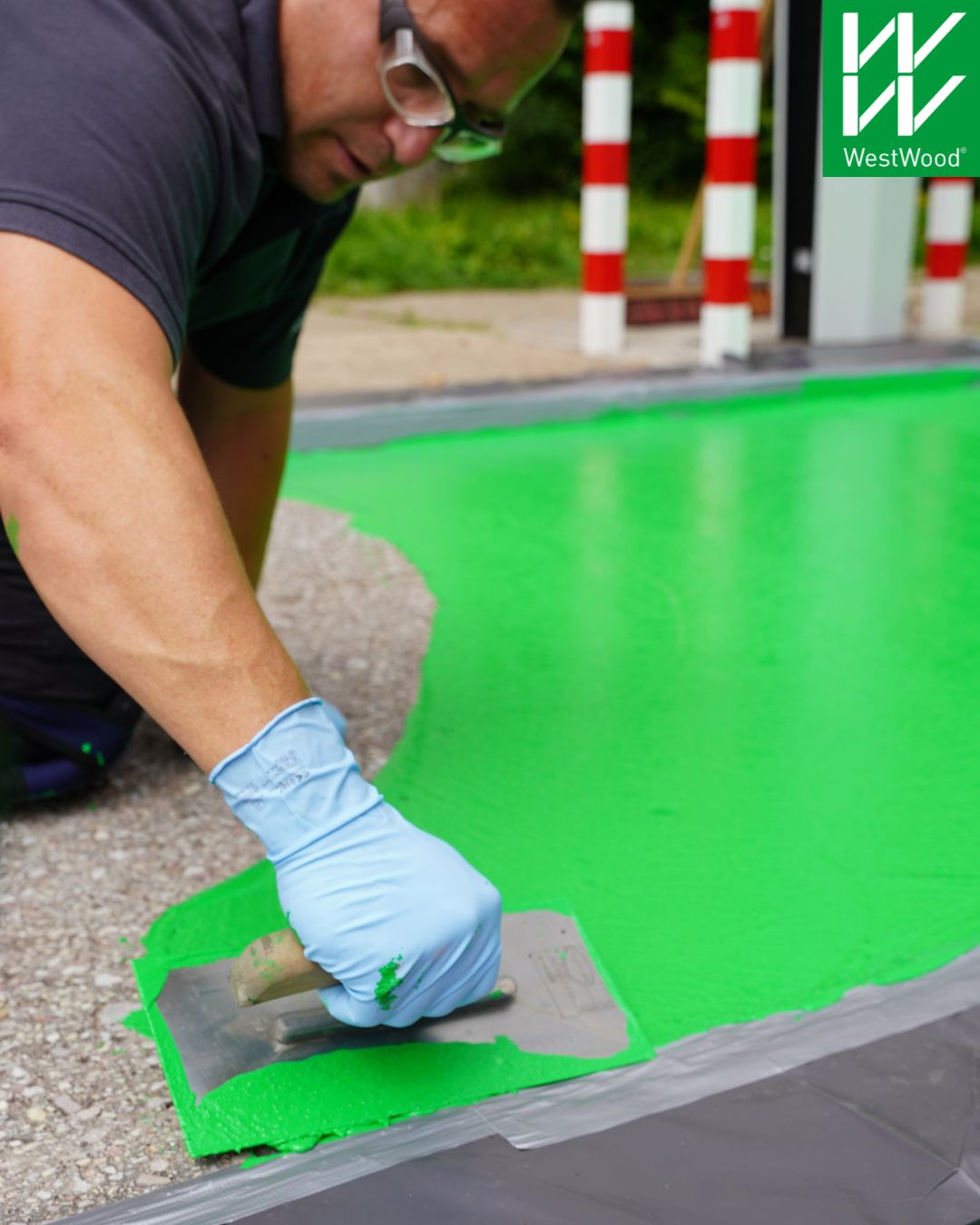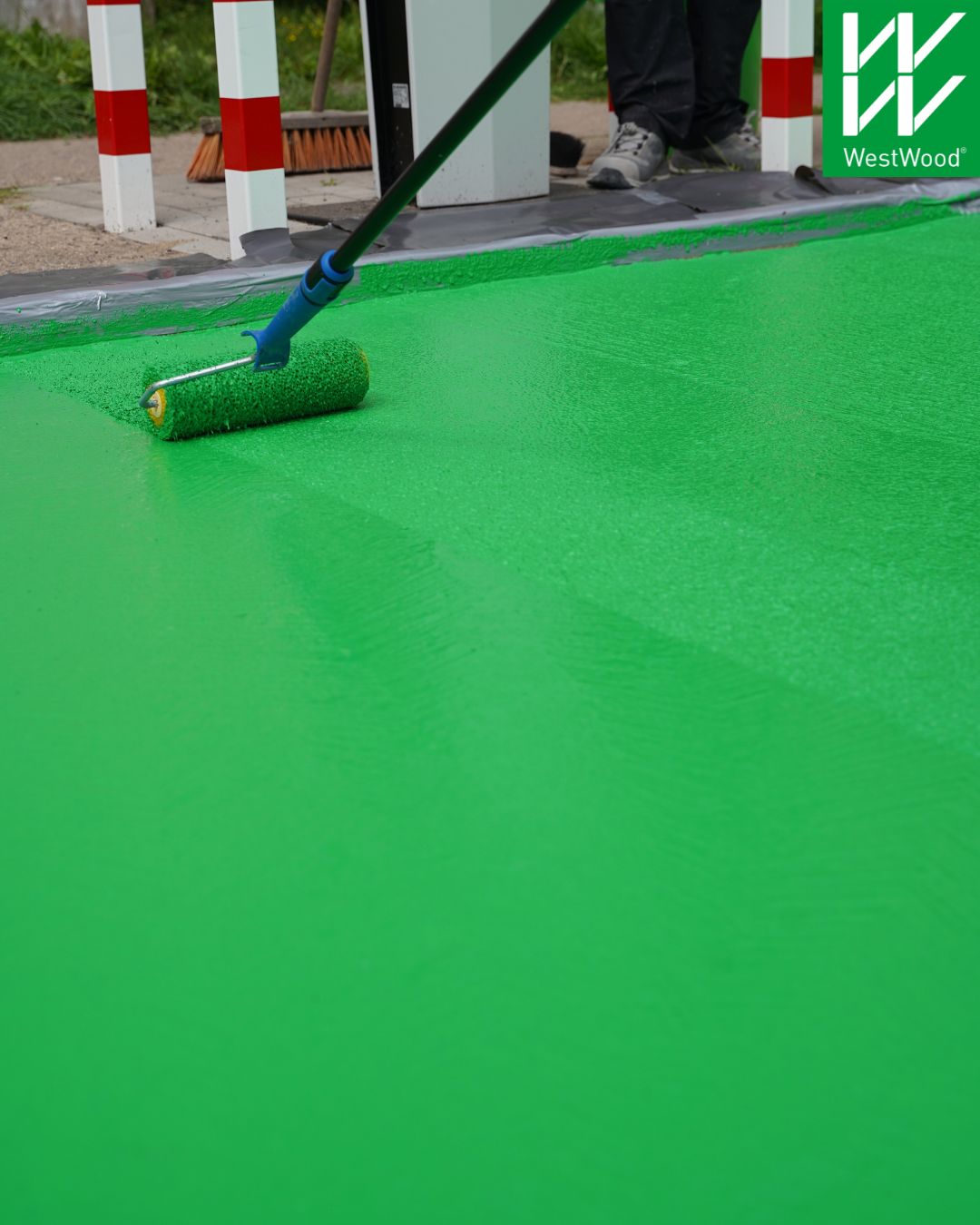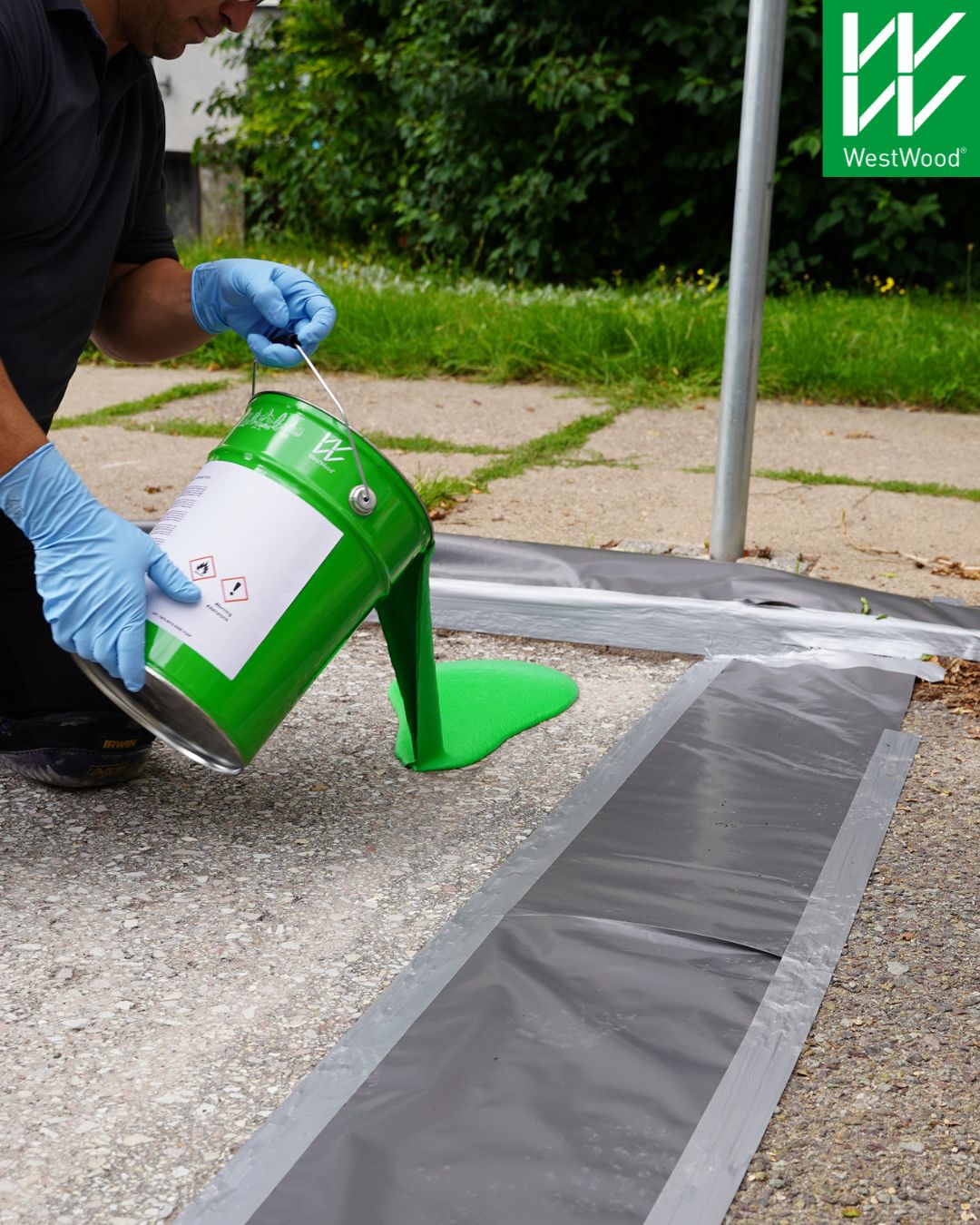 The substrate was carefully prepared beforehand: It was sanded down, existing cracks were sealed with Wecryl 887 and then thoroughly vacuumed - for an optimum and long-lasting result.