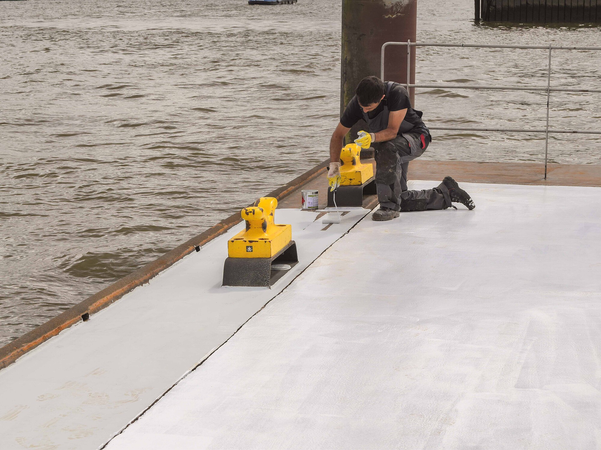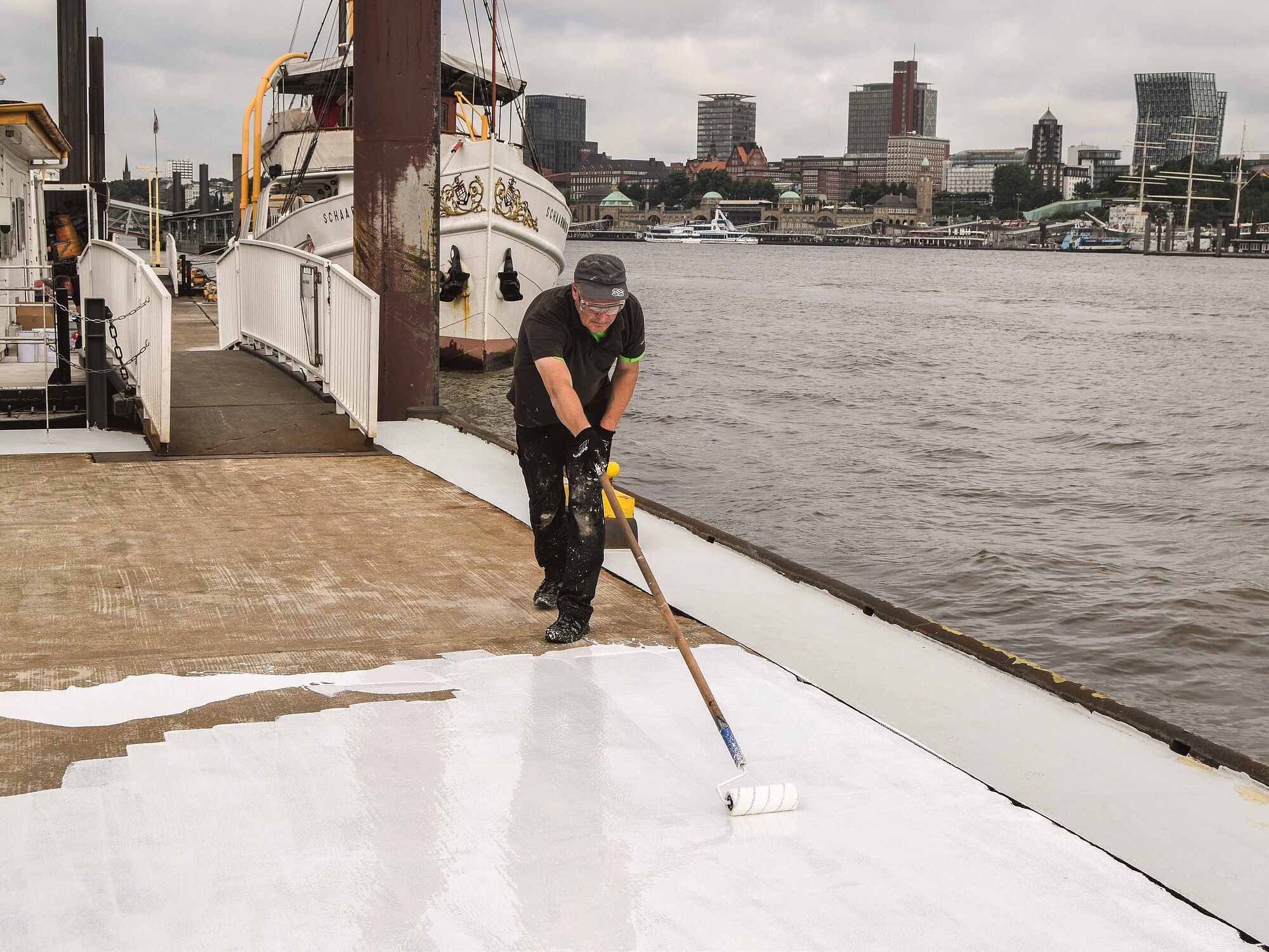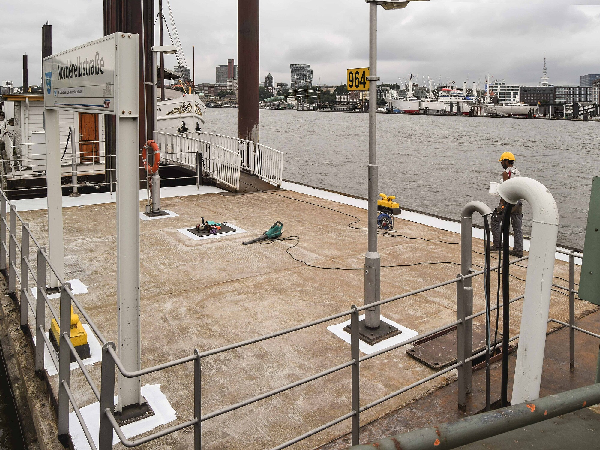 Safe on board thanks to PMMA: At the Norderelbstraße pontoon, the journey begins on the listed steamship Schaarhörn. Passengers embark on their charter or traditional trips on the steel 'Swan of the Lower Elbe', built in 1908 for the Hamburg Senate, via the three floating bodies of approx. 300 m² each. The constant impact of the Elbe water as well as the strong mechanical loads caused by the ship's operation made a renovation of the pontoons necessary. The local EKER Ingenieurbüro für Bauwesen e.K. was commissioned with the creation of a durable surface protection system. The decisive factor was the requirement for the shortest possible closing time during the main season, which was met by the PMMA solution from WestWood®.