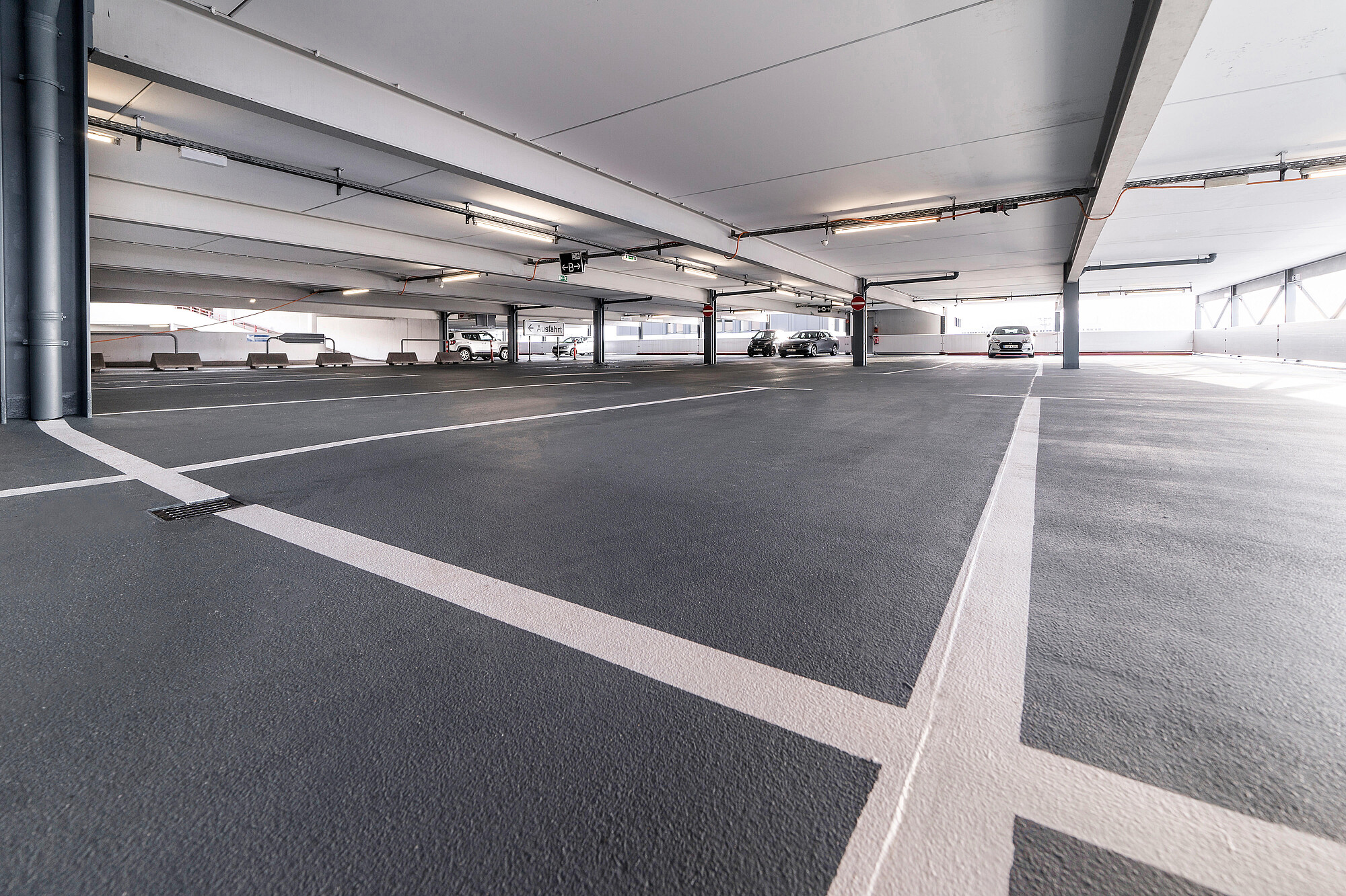 Scope: Surface coating of the three-story structure, total area approx. 12,000 m² plus 1,600 m² ramps