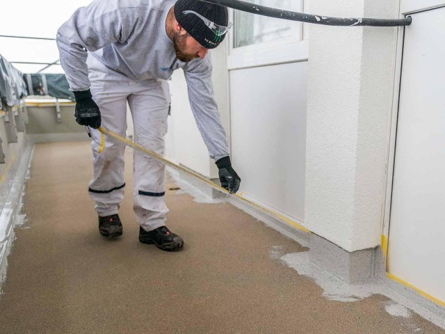 In the mid-1960s, 441 one- and two-bedroom apartments were built in the three residential blocks Am Stutenanger 6/8/10. As part of a comprehensive general overhaul, a good 2,800 m² of balcony area in the first construction phase of this flagship project, which is now getting on in years, was renovated in 2015 to make it more energy-efficient. The client's requirement was for a flame-retardant structure from insulation to finish. The solution implemented includes the permanently safe protection provided by the WestWood® Weproof system as a waterproofing and utility covering in one. The contract for carrying out the renovation measures was awarded to the regional specialist company E. Auer GmbH from Unterschleißheim, which was able to convince with manpower, experience and competence.