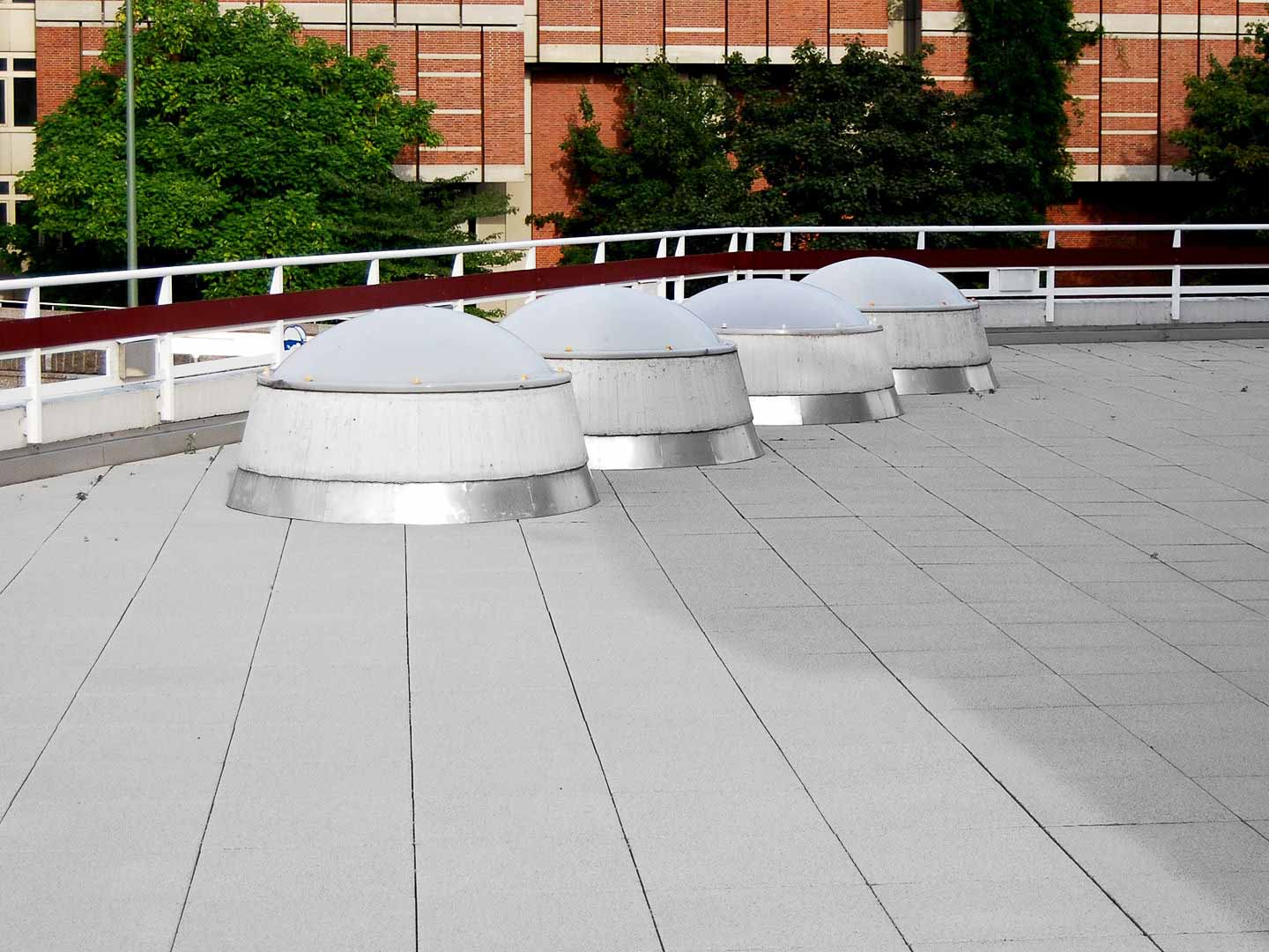 The fully fleece-reinforced WestWood® Wecryl waterproofing system under third-party coverings permanently and safely protects the roof terrace (total area approx. 840 m²) of the Philharmonie in Berlin. It could be applied directly (without primer) to the bituminous membrane. With the winding roof geology and the large number of penetrations, the strength of the liquid resin came into its own.