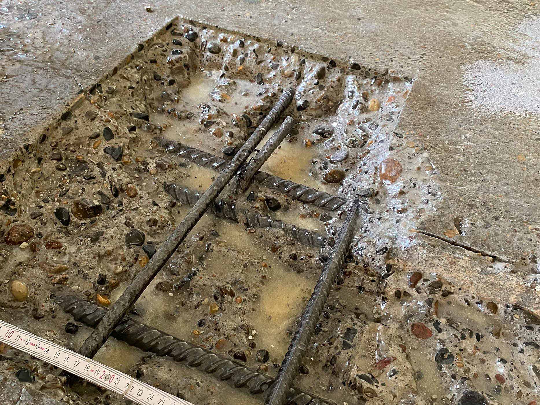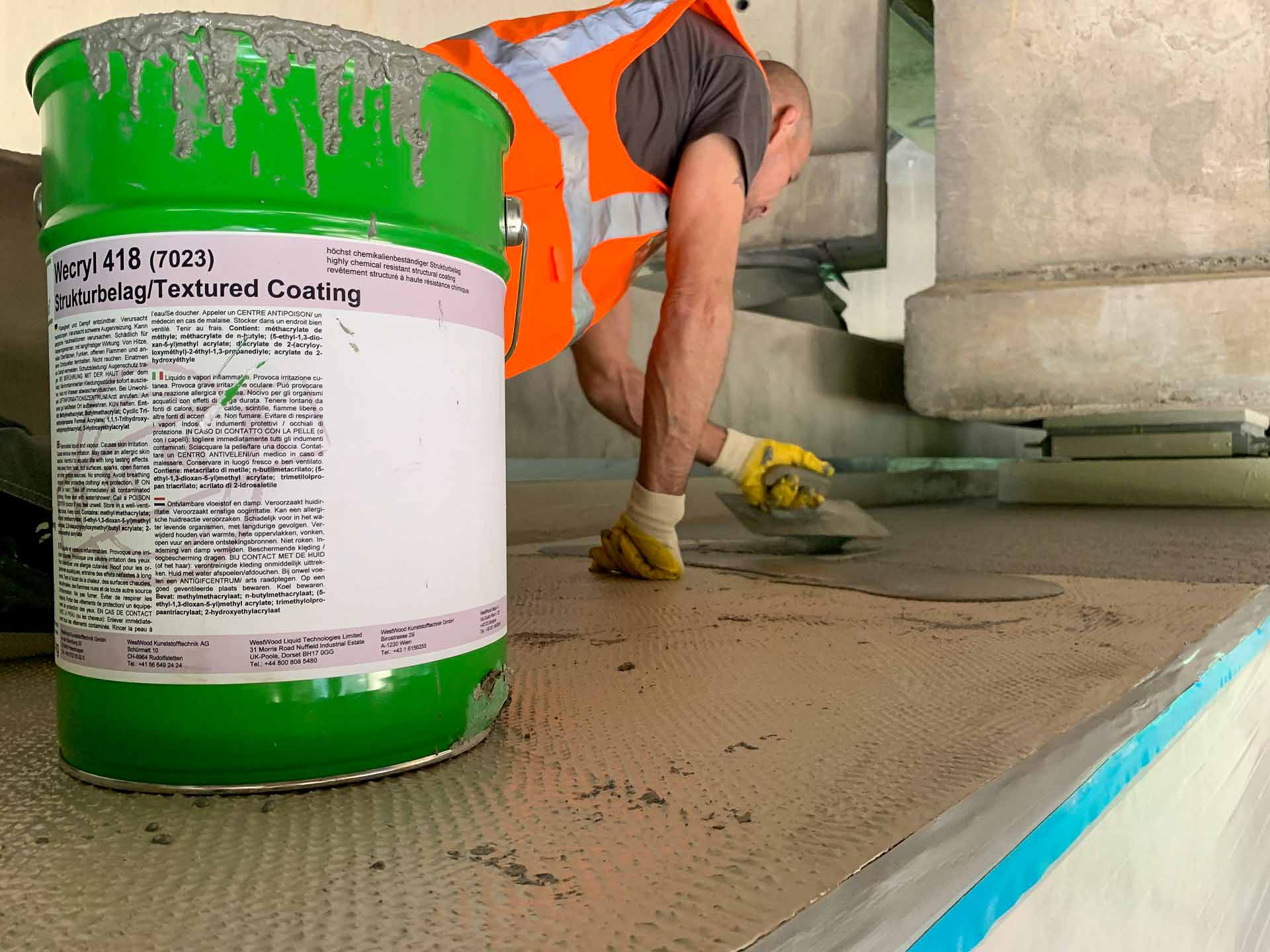 Applied: BIS mortar Wecryl 885 as well as WestWood Wecryl surface protection system OS F (Wecryl 276, Wecryl 271, Wecryl 418), details: Wecryl R 230 thix, Weplus fleece.