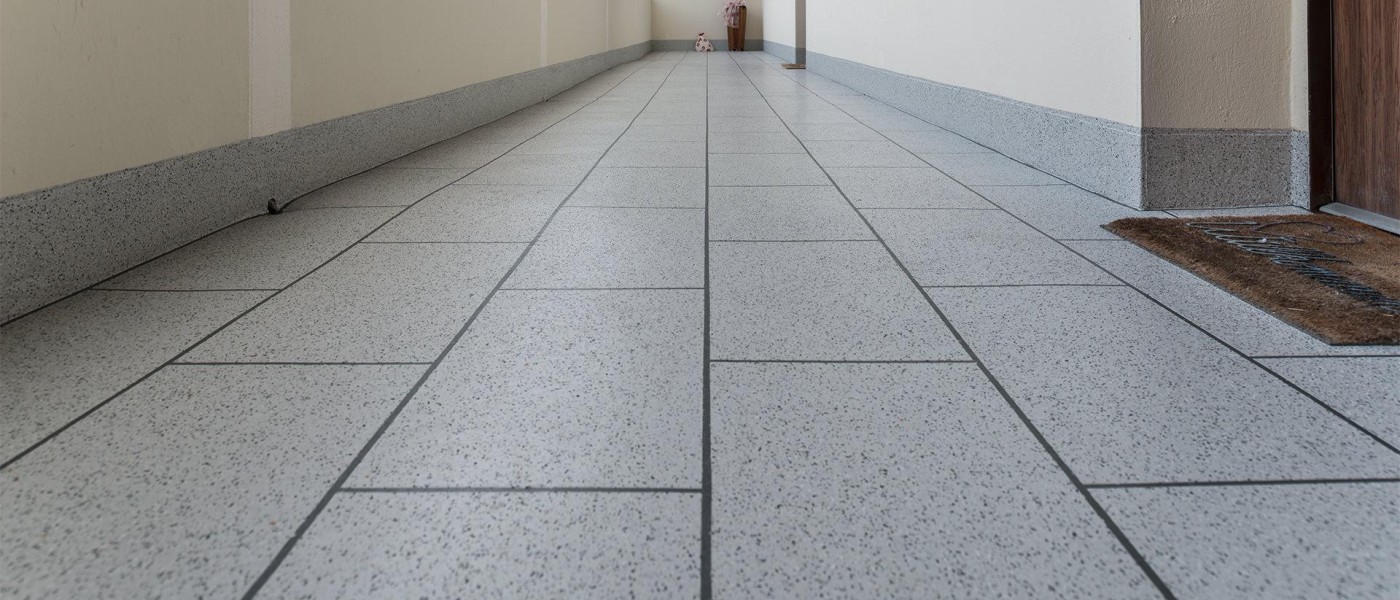 Fliesenoptik aus PMMA auf sechs Laubengängen