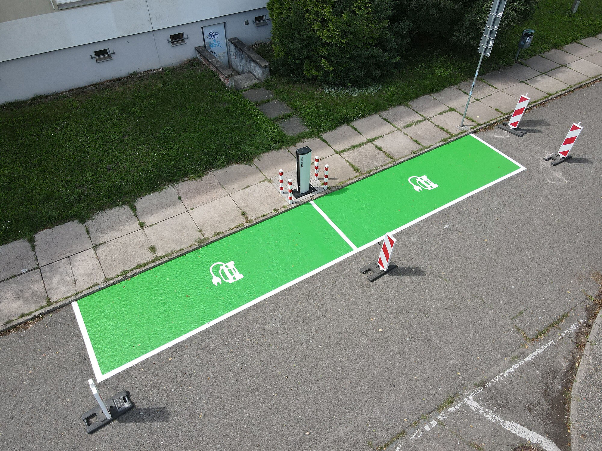E-Auto Ladestation in strahlendem Grün