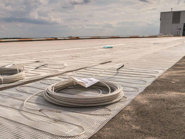 Am Standort Lübeck des Universitätsklinikums Schleswig- Holstein (UKSH) entsteht ein Zentralklinikum für die Krankenversorgung, Forschung und Lehre. Der neue Gebäudetrakt besitzt einen Hubschrauberlandeplatz, dessen Konstruktion mit einer Gussasphalt-Nutzschicht inklusive Bitumenschweißbahn ausgeführt wurde. Für den sicheren ganzjährigen Betrieb des Heliports wurde eine Freiflächenheizung vorgesehen, die neben dem wirtschaftlichen Betrieb ein geringes Flächengewicht, eine minimale Aufbauhöhe und beste Haftungseigenschaften auf Asphalt garantiert. Somit kam das WestWood® System „Freiflächenheizung“, welches diese Anforderungen voll erfüllt, zum Einsatz. Auch die Flugsicherungsvorgaben an Markierung, Farbgebung, Griffigkeit und Rutschhemmung erfüllen die Nutzschichten. Und Dank der oberflächennahen Heizebene ist bei Schnee und Eis die schnelle, wirtschaftliche Heizwirkung gegeben.